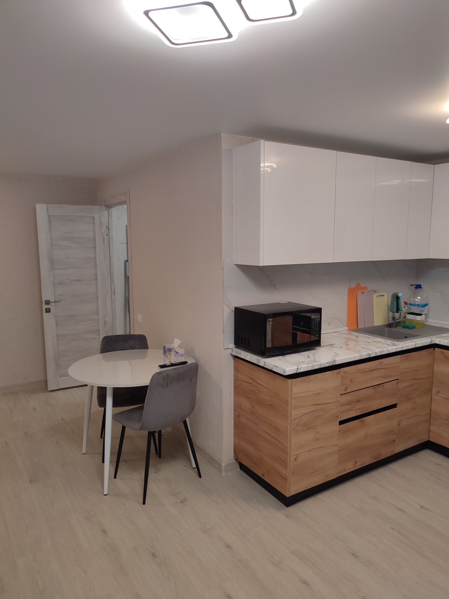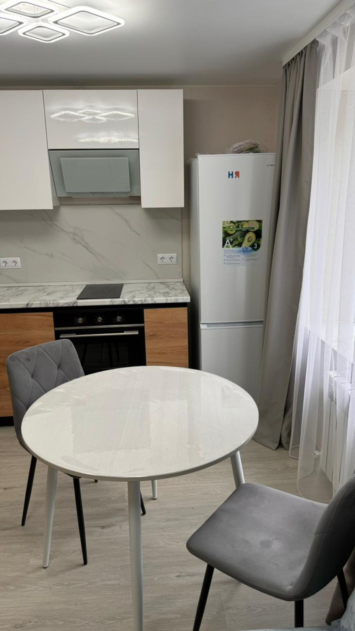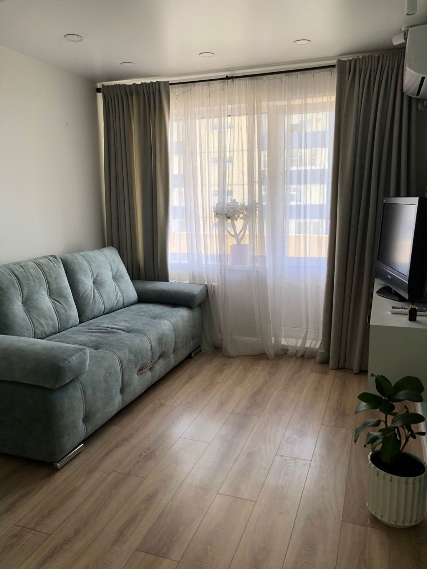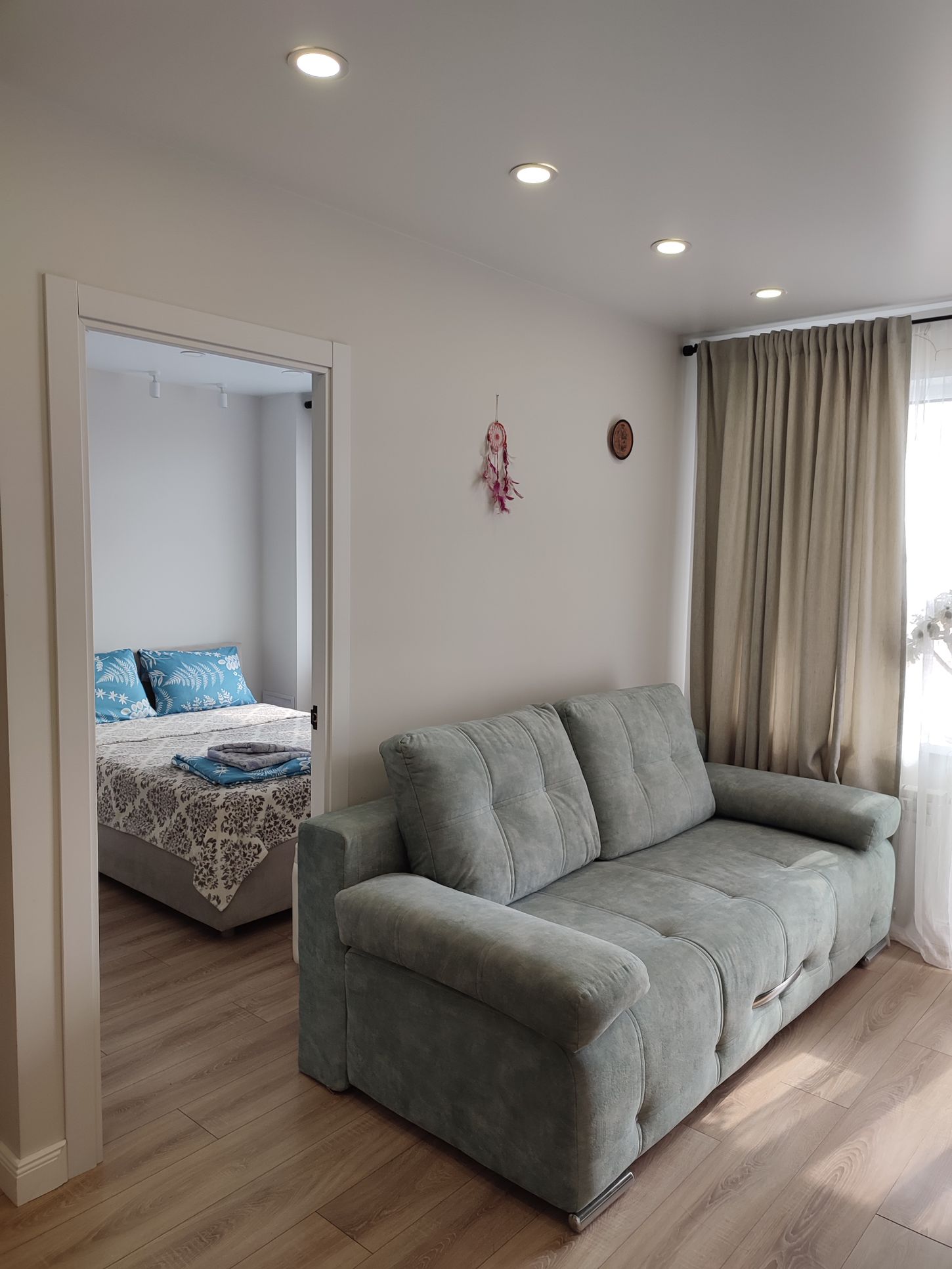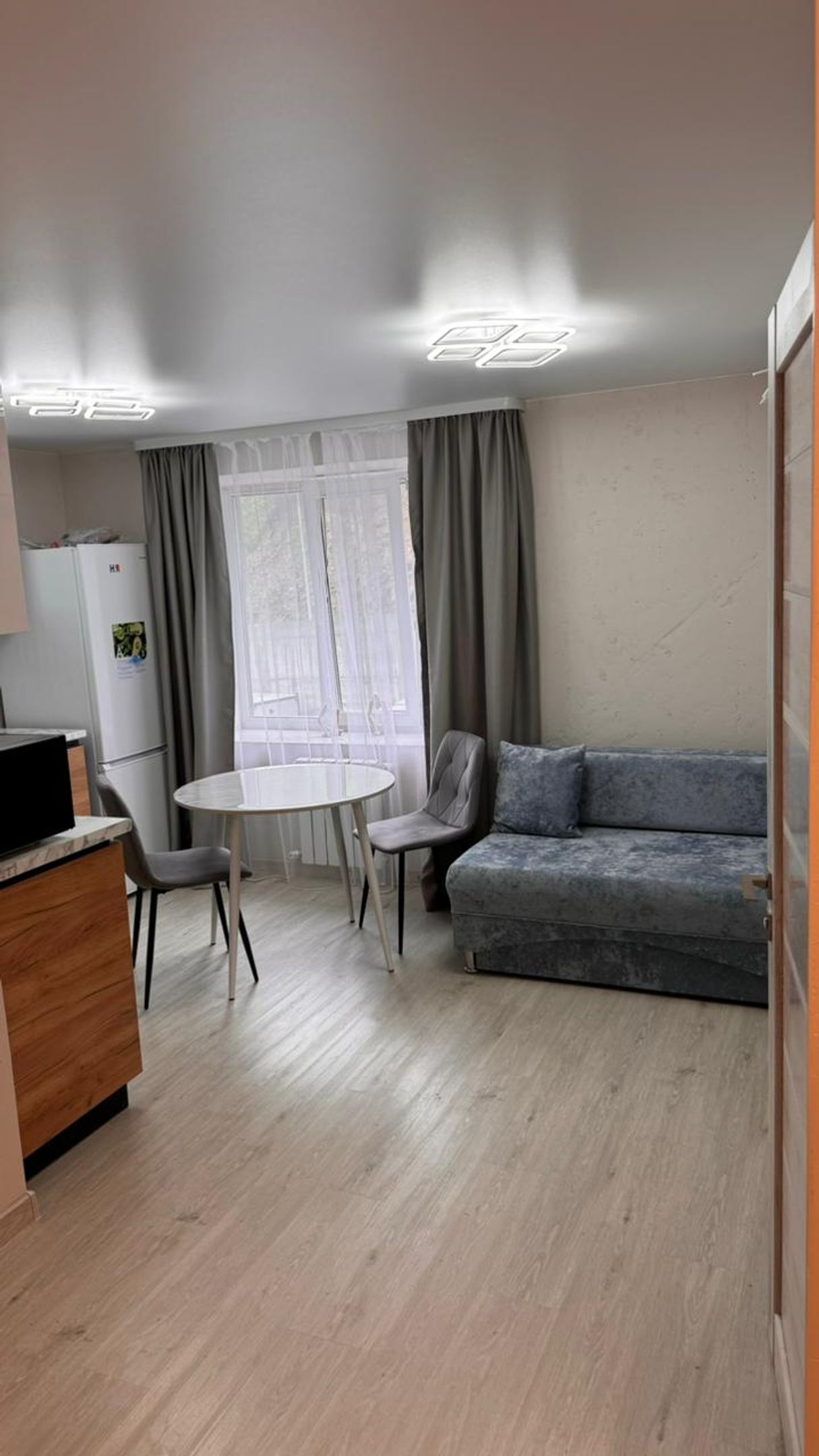 Комфортная, новая, евро студия! Небольшая, аккуратная с видом на город, двухспальный раскладной диван, а также раскладное кресло, полноценное спальное место, смарт телевизор ВНИМАНИЕ! залог не возвращается если оставлен мусор, не помыта посуда, а так же грязь, хаос после себя. Возврат залога после 18:00 при соблюдении правила. 28 м2. 3 гостя, 2 кровати, Кухня-гостиная, Этаж 5 из 12, Лифт, 1 ванная, комната, Бесплатная парковка. Кондиционер, Беспроводной интернет Wi-Fi, Телевизор, Электрический чайник, Фен, Микроволновка, Рабочий стол, Стиральная машина, Блэкаут шторы, Шкаф, Холодильник. Кухня-гостиная: Электроплита, Микроволновка, Фильтр для воды, Посуда и принадлежности, Столовые приборы, Электрический чайник, Холодильник, Морозильник, Кухонный гарнитур, Обеденный стол Ванная комната 1 туалет, 1 ванная комната с туалетом, Полотенца, Туалетные принадлежности, Фен, Душ, Тапочки, Гигиенический душ