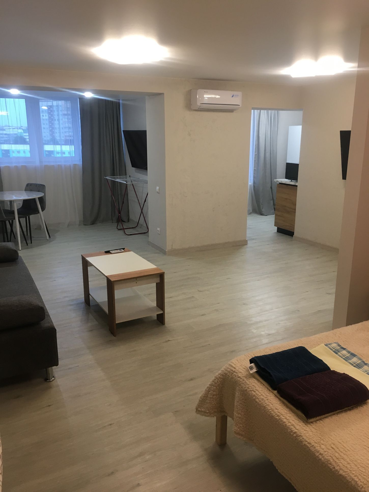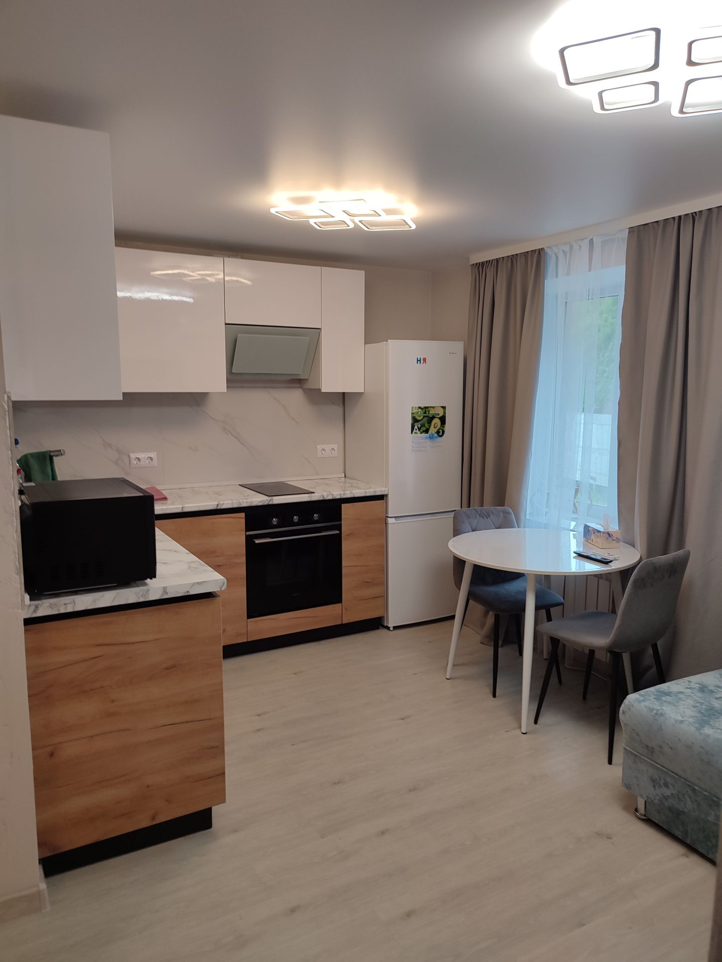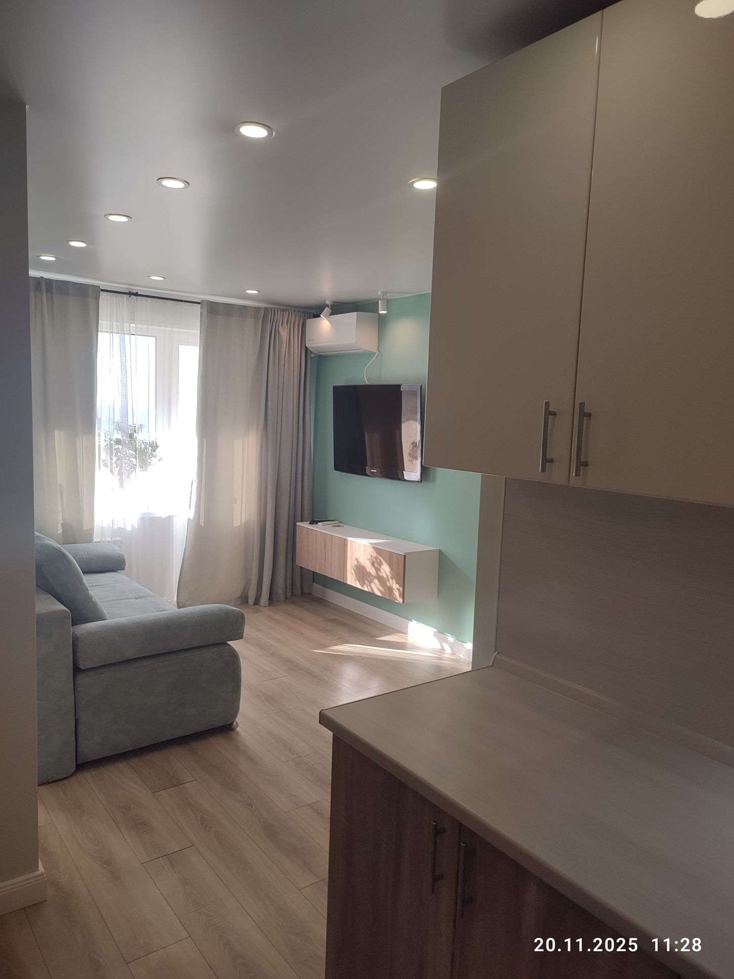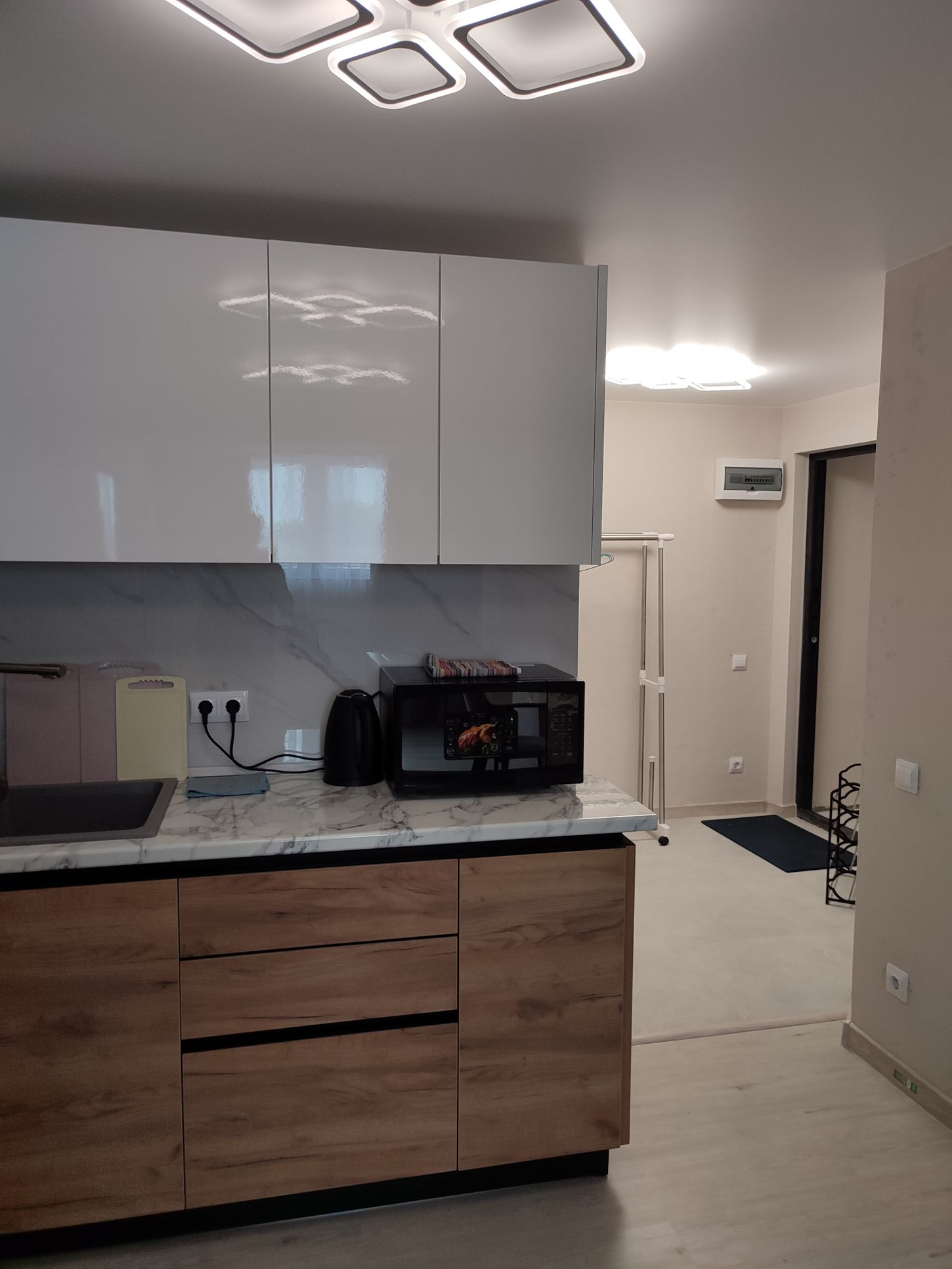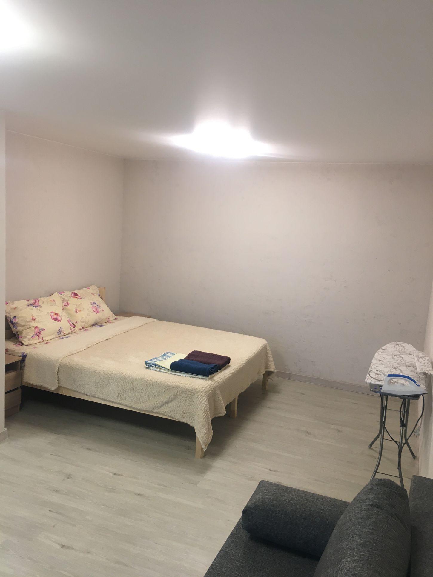 Комфортная, новая, евро студия! Небольшая, аккуратная с видом на город, двухспальный раскладной диван, а также раскладное кресло, полноценное спальное место, смарт телевизор ВНИМАНИЕ! залог не возвращается если оставлен мусор, не помыта посуда, а так же грязь, хаос после себя. Возврат залога после 18:00 при соблюдении правила. 28 м2. 3 гостя, 2 кровати, Кухня-гостиная, Этаж 5 из 12, Лифт, 1 ванная, комната, Бесплатная парковка. Кондиционер, Беспроводной интернет Wi-Fi, Телевизор, Электрический чайник, Фен, Микроволновка, Рабочий стол, Стиральная машина, Блэкаут шторы, Шкаф, Холодильник. Кухня-гостиная: Электроплита, Микроволновка, Фильтр для воды, Посуда и принадлежности, Столовые приборы, Электрический чайник, Холодильник, Морозильник, Кухонный гарнитур, Обеденный стол Ванная комната 1 туалет, 1 ванная комната с туалетом, Полотенца, Туалетные принадлежности, Фен, Душ, Тапочки, Гигиенический душ