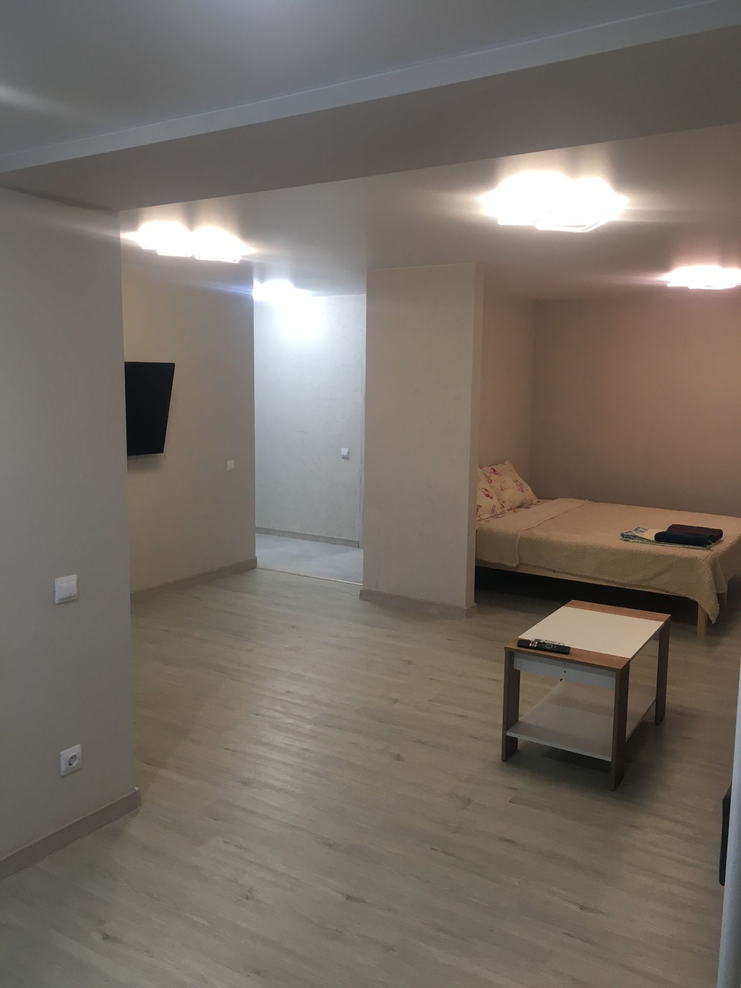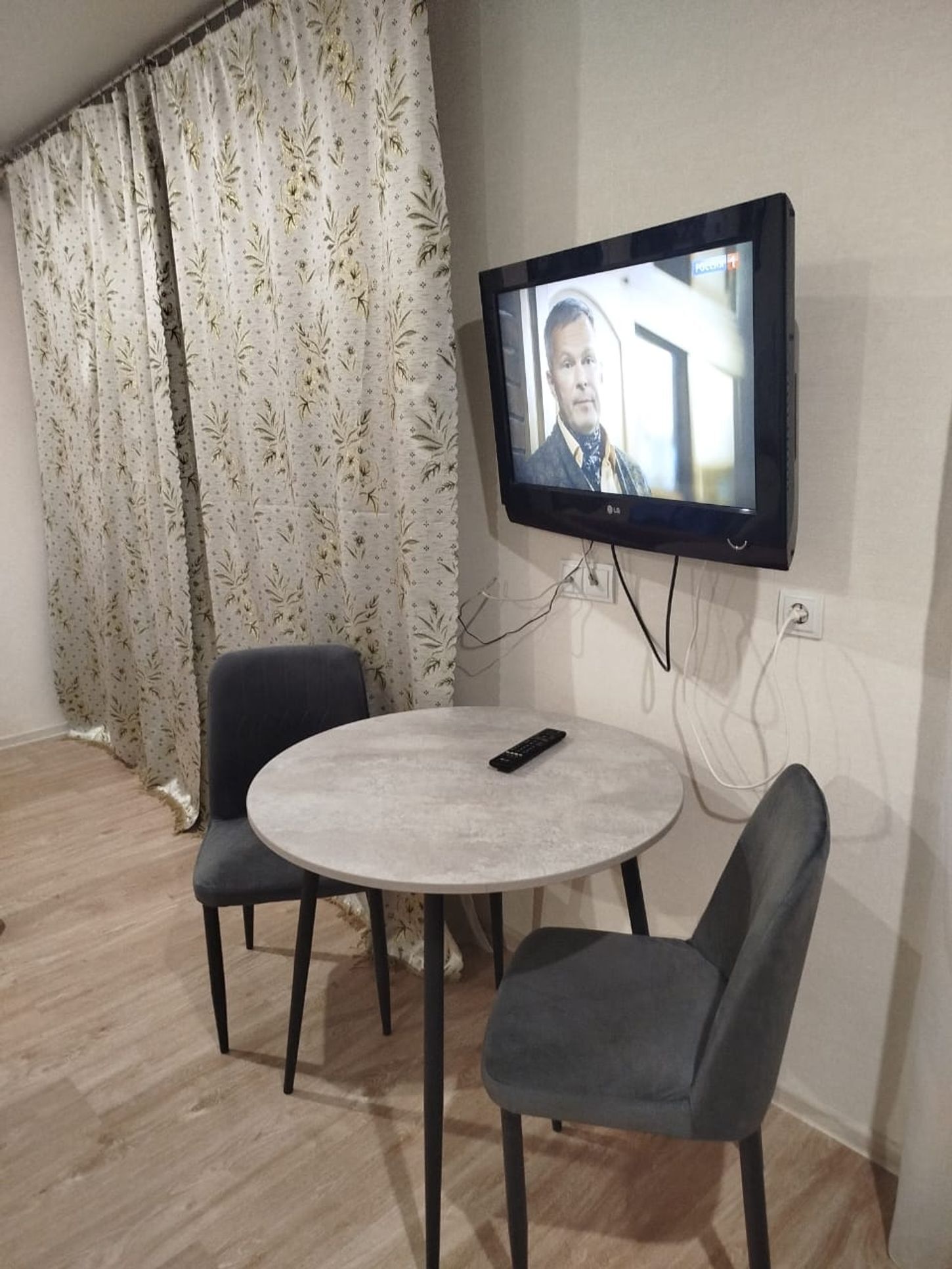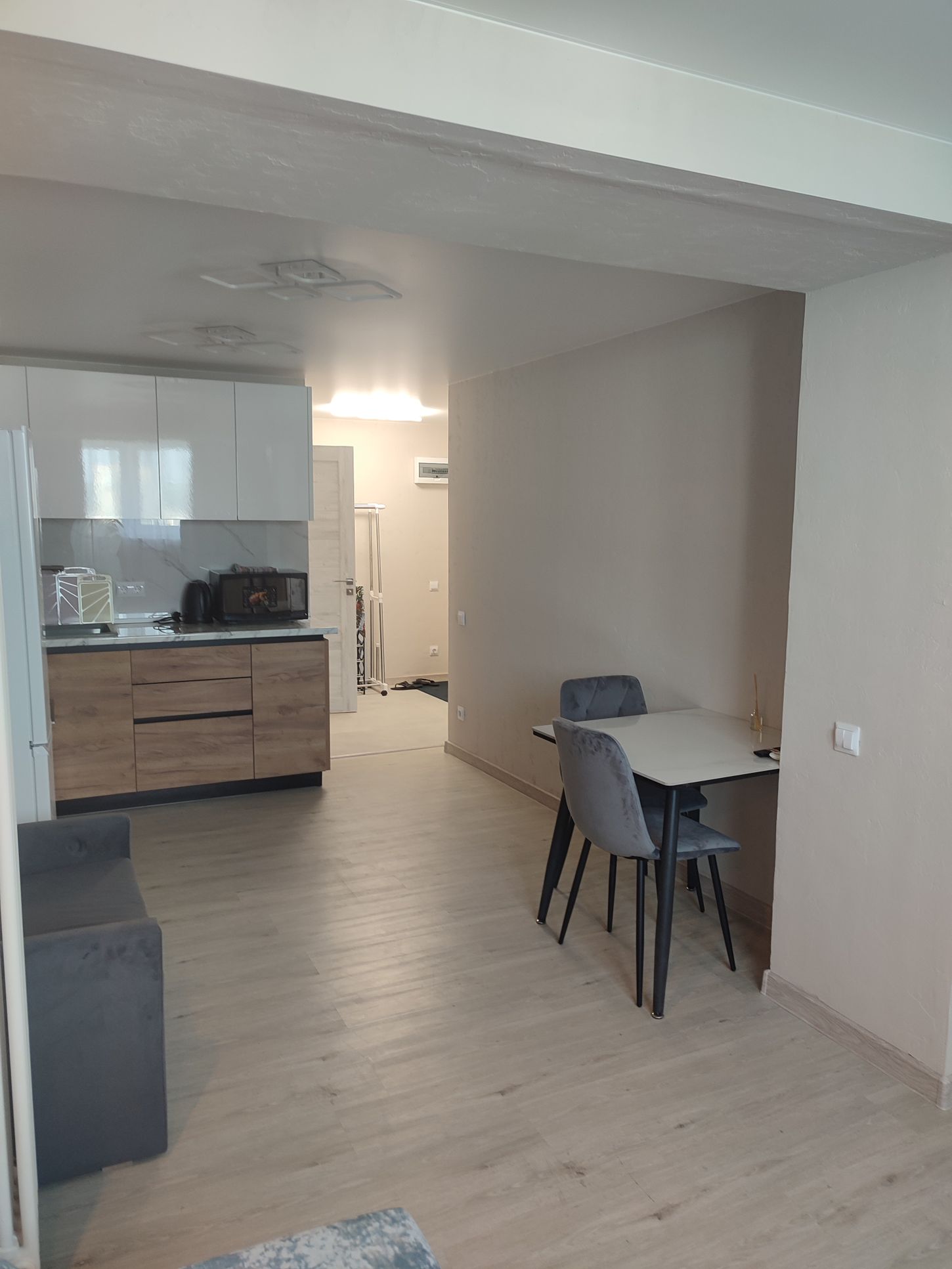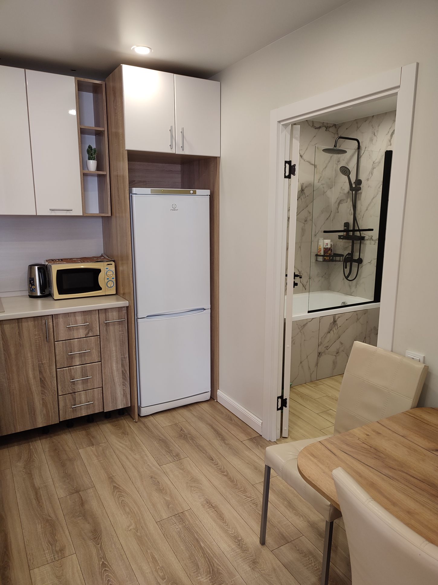 Комфортная, новая, евро студия! Небольшая, аккуратная с видом на город, двухспальный раскладной диван, а также раскладное кресло, полноценное спальное место, смарт телевизор ВНИМАНИЕ! залог не возвращается если оставлен мусор, не помыта посуда, а так же грязь, хаос после себя. Возврат залога после 18:00 при соблюдении правила. 28 м2. 3 гостя, 2 кровати, Кухня-гостиная, Этаж 5 из 12, Лифт, 1 ванная, комната, Бесплатная парковка. Кондиционер, Беспроводной интернет Wi-Fi, Телевизор, Электрический чайник, Фен, Микроволновка, Рабочий стол, Стиральная машина, Блэкаут шторы, Шкаф, Холодильник. Кухня-гостиная: Электроплита, Микроволновка, Фильтр для воды, Посуда и принадлежности, Столовые приборы, Электрический чайник, Холодильник, Морозильник, Кухонный гарнитур, Обеденный стол Ванная комната 1 туалет, 1 ванная комната с туалетом, Полотенца, Туалетные принадлежности, Фен, Душ, Тапочки, Гигиенический душ