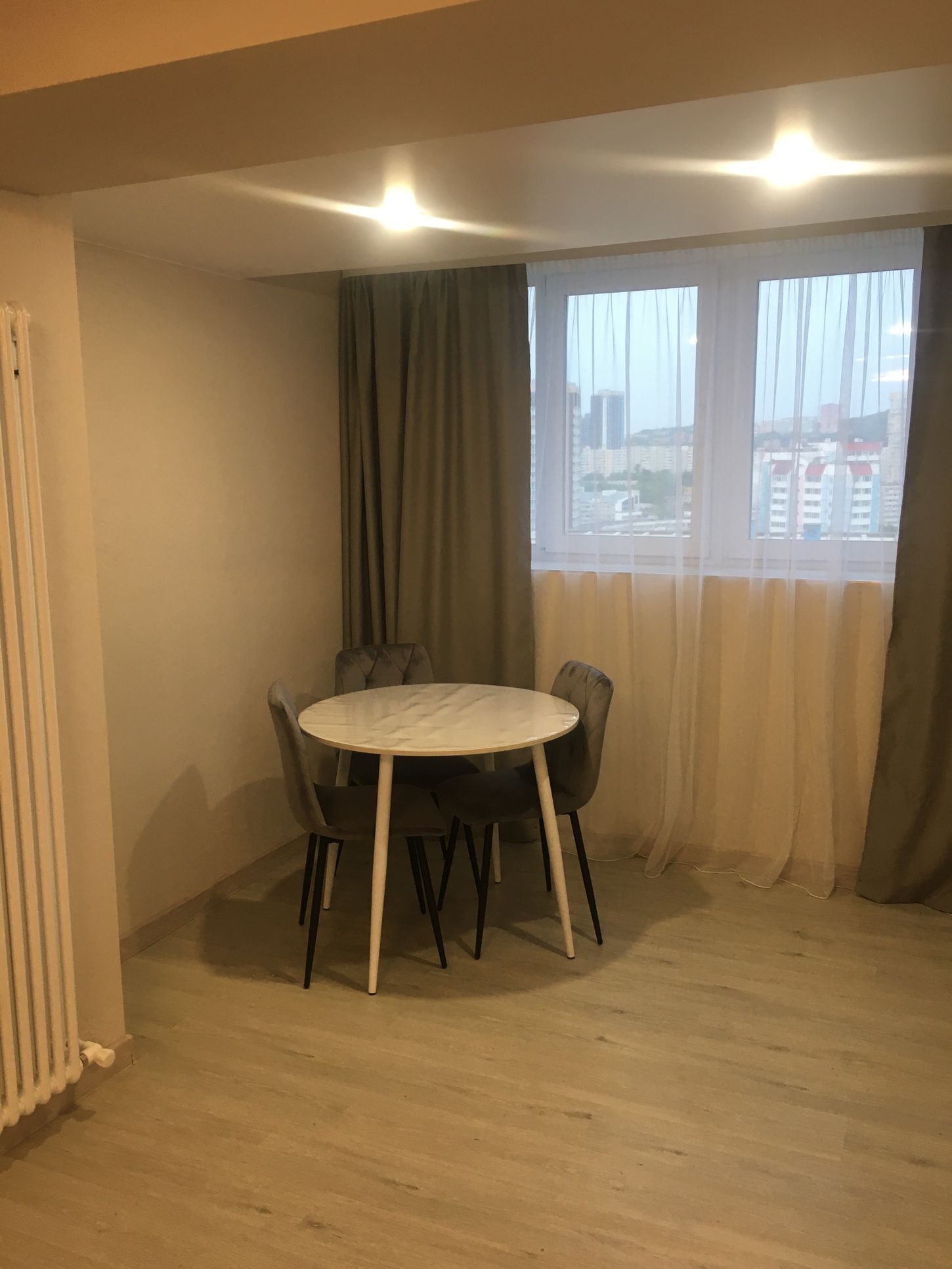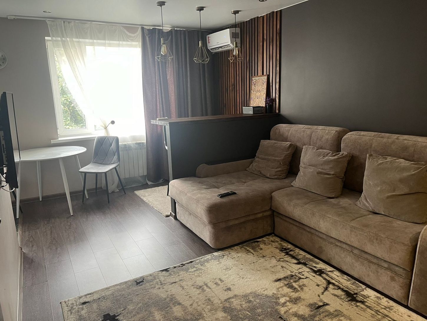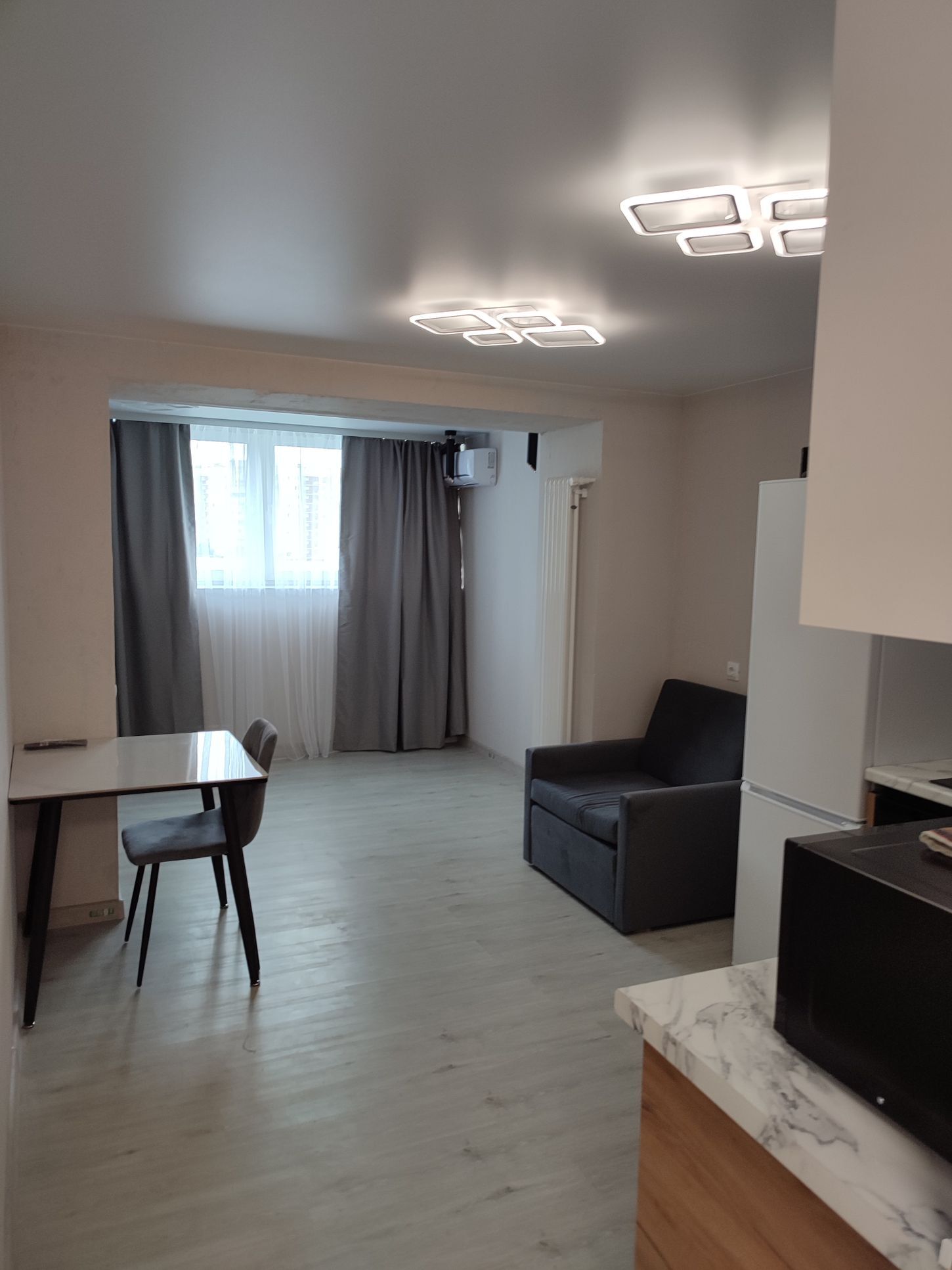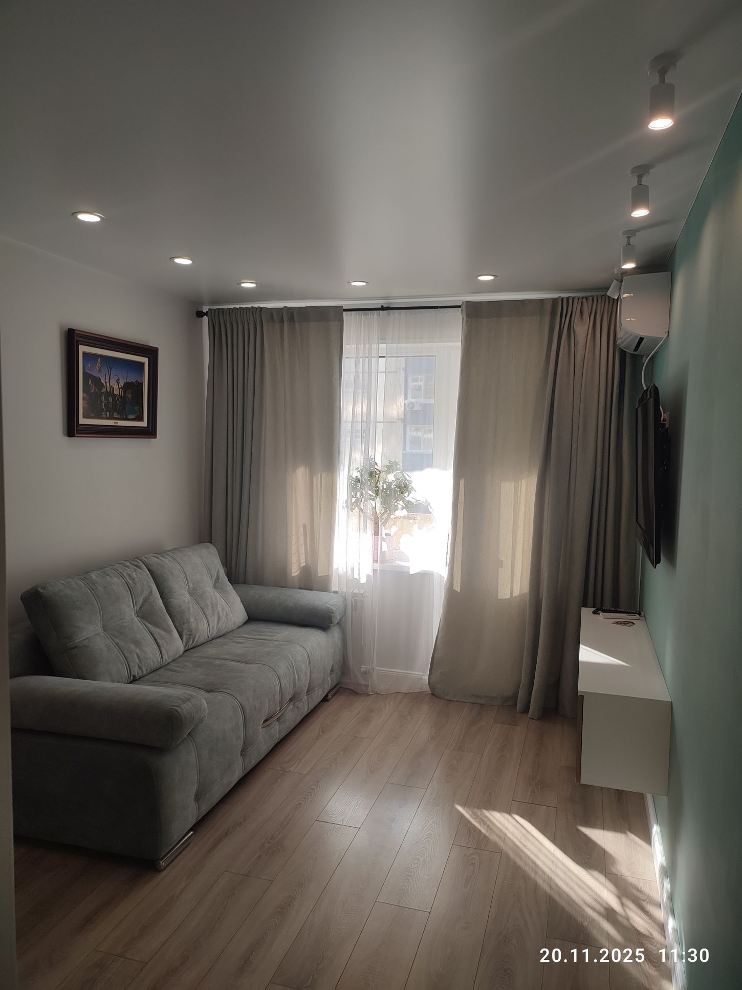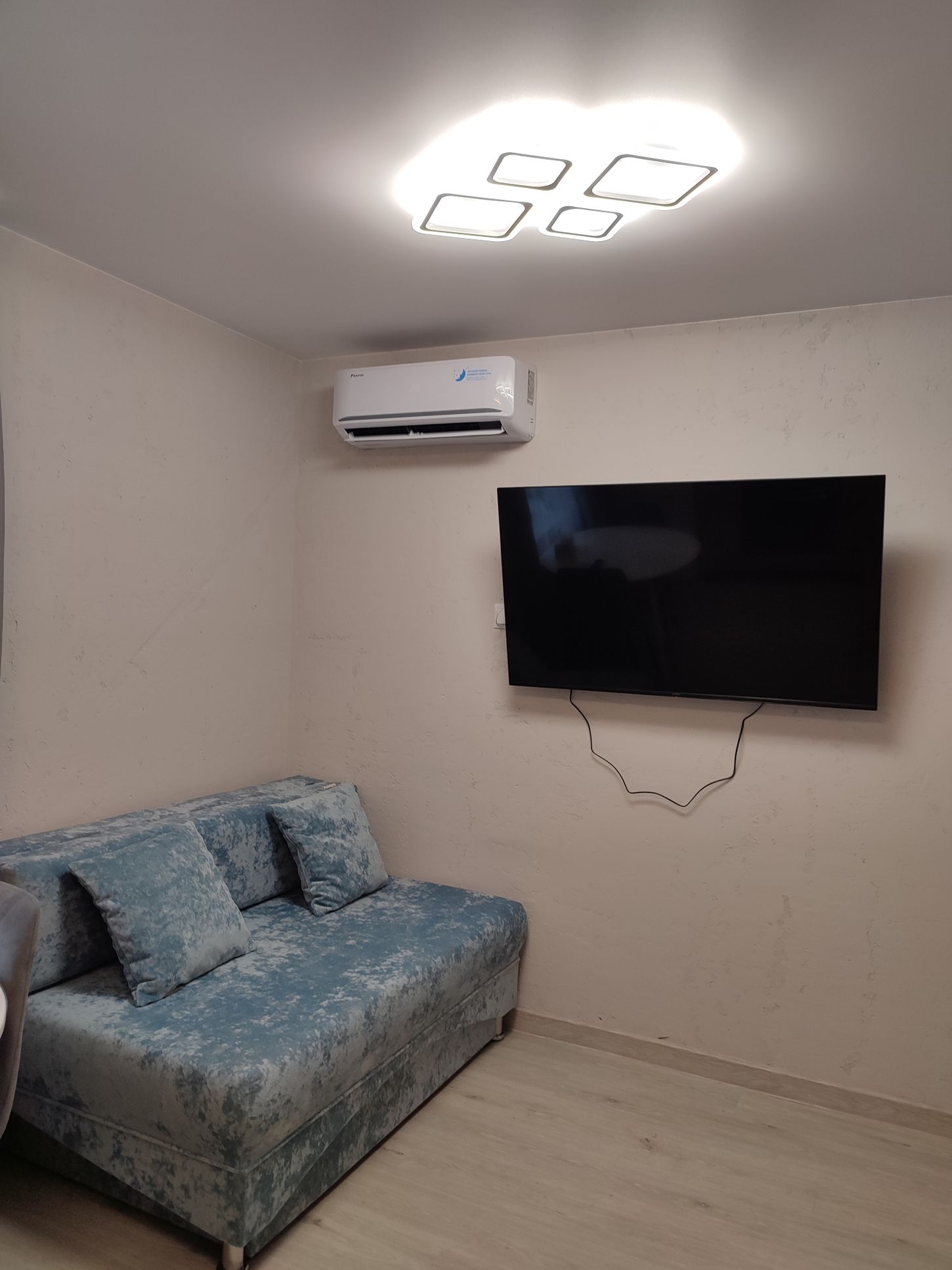 Комфортная, новая, евро студия! Небольшая, аккуратная с видом на город, двухспальный раскладной диван, а также раскладное кресло, полноценное спальное место, смарт телевизор ВНИМАНИЕ! залог не возвращается если оставлен мусор, не помыта посуда, а так же грязь, хаос после себя. Возврат залога после 18:00 при соблюдении правила. 28 м2. 3 гостя, 2 кровати, Кухня-гостиная, Этаж 5 из 12, Лифт, 1 ванная, комната, Бесплатная парковка. Кондиционер, Беспроводной интернет Wi-Fi, Телевизор, Электрический чайник, Фен, Микроволновка, Рабочий стол, Стиральная машина, Блэкаут шторы, Шкаф, Холодильник. Кухня-гостиная: Электроплита, Микроволновка, Фильтр для воды, Посуда и принадлежности, Столовые приборы, Электрический чайник, Холодильник, Морозильник, Кухонный гарнитур, Обеденный стол Ванная комната 1 туалет, 1 ванная комната с туалетом, Полотенца, Туалетные принадлежности, Фен, Душ, Тапочки, Гигиенический душ