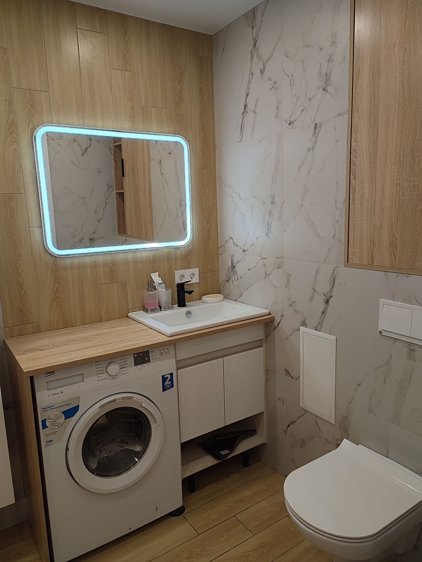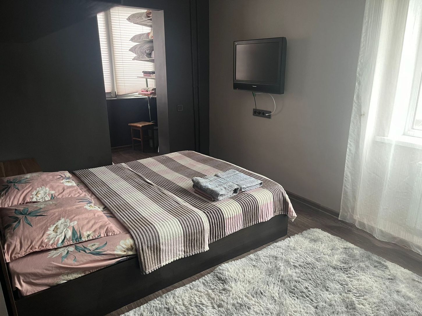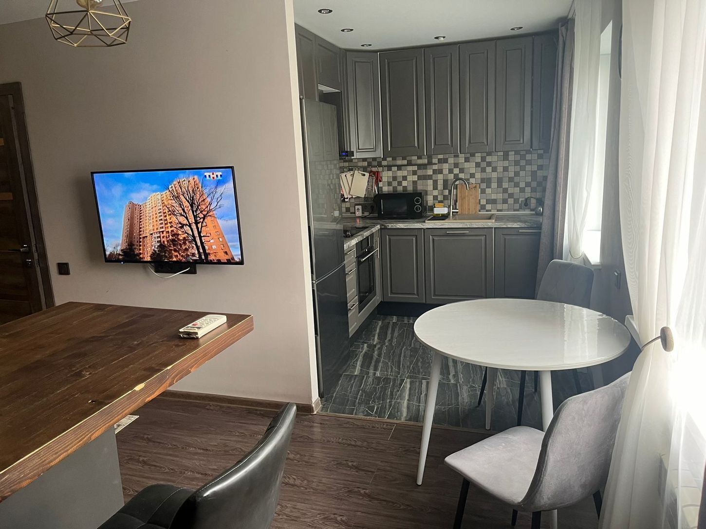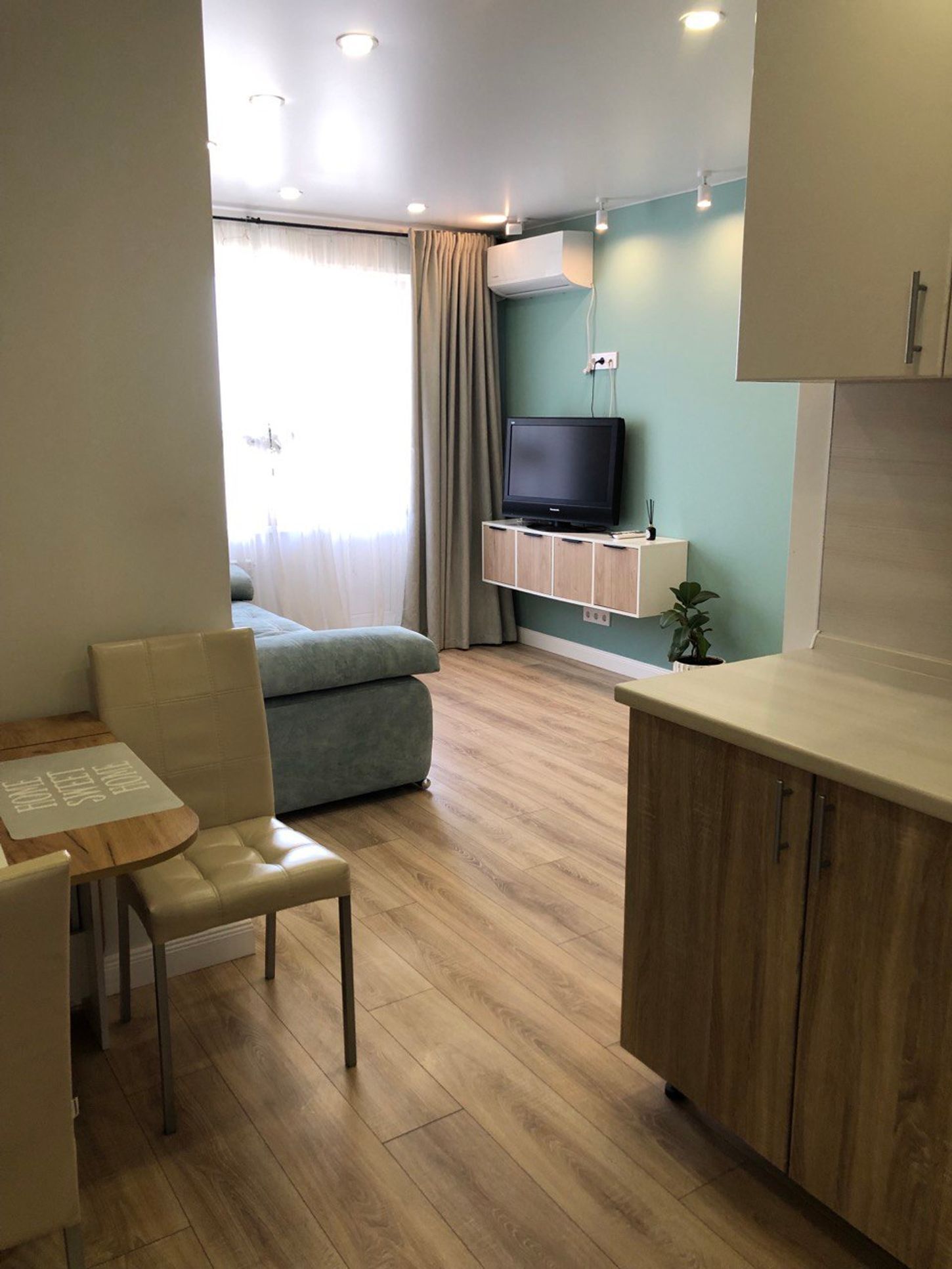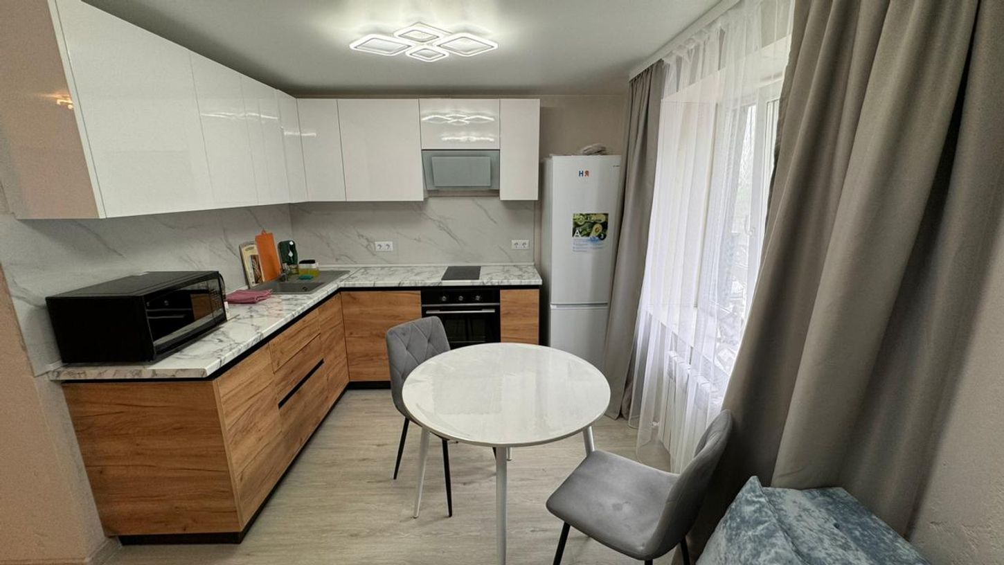 Комфортная, новая, евро студия! Небольшая, аккуратная с видом на город, двухспальный раскладной диван, а также раскладное кресло, полноценное спальное место, смарт телевизор ВНИМАНИЕ! залог не возвращается если оставлен мусор, не помыта посуда, а так же грязь, хаос после себя. Возврат залога после 18:00 при соблюдении правила. 28 м2. 3 гостя, 2 кровати, Кухня-гостиная, Этаж 5 из 12, Лифт, 1 ванная, комната, Бесплатная парковка. Кондиционер, Беспроводной интернет Wi-Fi, Телевизор, Электрический чайник, Фен, Микроволновка, Рабочий стол, Стиральная машина, Блэкаут шторы, Шкаф, Холодильник. Кухня-гостиная: Электроплита, Микроволновка, Фильтр для воды, Посуда и принадлежности, Столовые приборы, Электрический чайник, Холодильник, Морозильник, Кухонный гарнитур, Обеденный стол Ванная комната 1 туалет, 1 ванная комната с туалетом, Полотенца, Туалетные принадлежности, Фен, Душ, Тапочки, Гигиенический душ