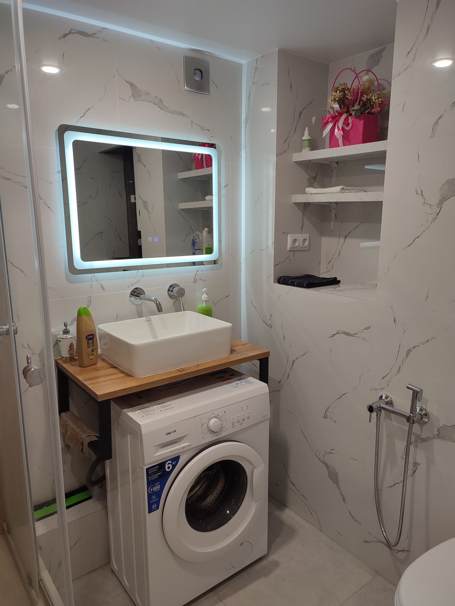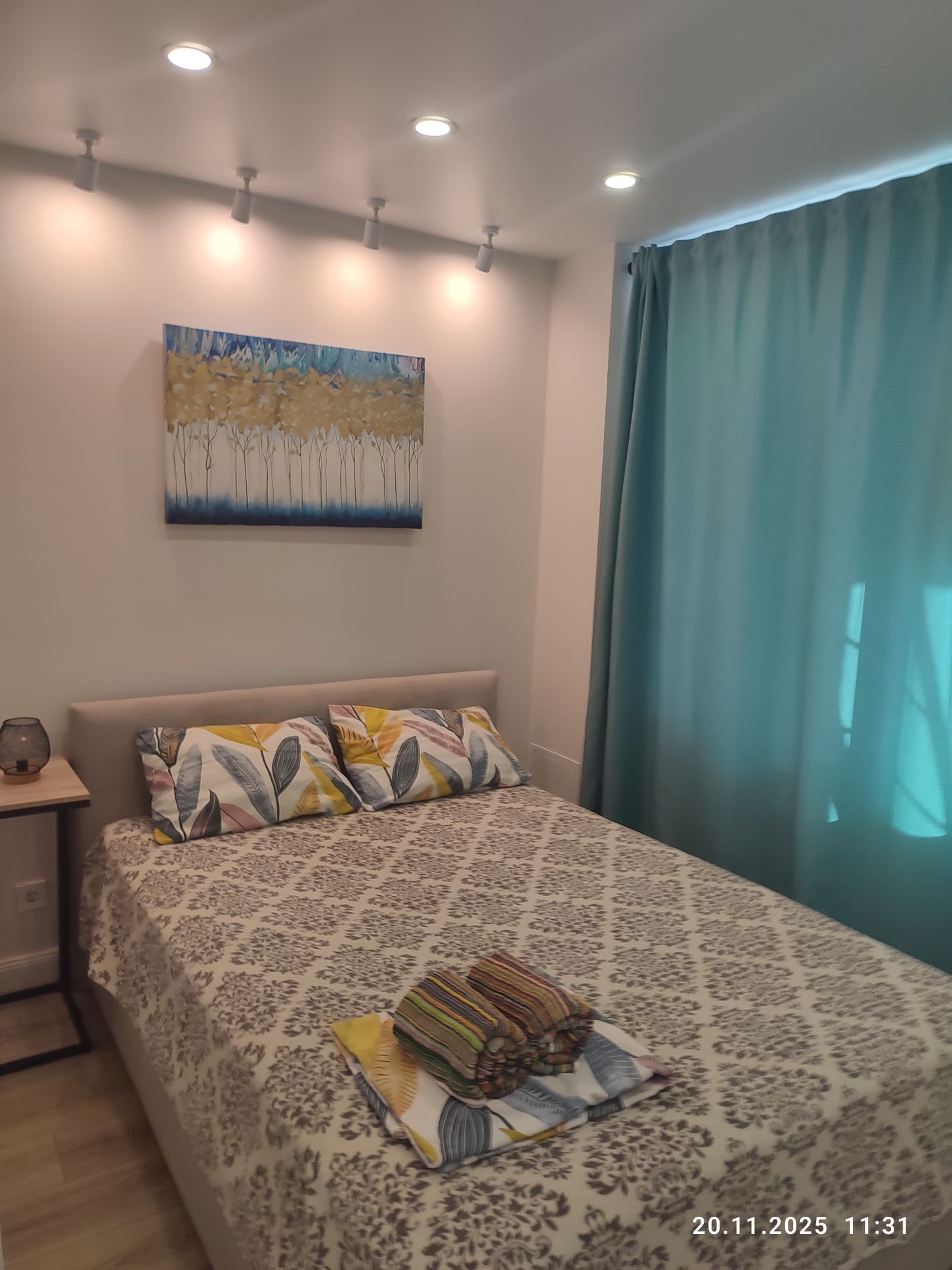 1-комнатная квартира 45 м2, 4 гостя, 2 кровати, Кухня-гостиная, Этаж 5 из 10, Лифт1, ванная комната, безплатная парковка Новая, евро, большая студия, солнечная, прекрасный вид, двуспальная кровать и диван-кровать двухместный. ВНИМАНИЕ! залог не возвращается если оставлен мусор, не помыта посуда, а так же грязь, хаос после себя. Возврат залога после 18:00 при соблюдении правила. Спальные места 2 кровати, 4 основных спальных места Основные удобства: Кондиционер, Балкон / Лоджия, Беспроводной интернет, Wi-Fi Телевизор, Электрический чайник, Фен, Микроволновка, Рабочий стол, Стиральная машина, Блэкаут шторы, Шкаф, Холодильник Кухня-гостиная: Электроплита, Духовка, Микроволновка, Фильтр для воды, Посуда и принадлежности, Столовые приборы, Электрический чайник, Холодильник, Морозильник, Кухонный гарнитур, Обеденный стол Ванная комната: 1 туалет, 1 ванная комната с туалетом, Полотенца, Туалетные принадлежности, Фен, Душ, Тапочки, Гигиенический душ Правила проживания Заезд с 14:00—Выезд до 12:00
