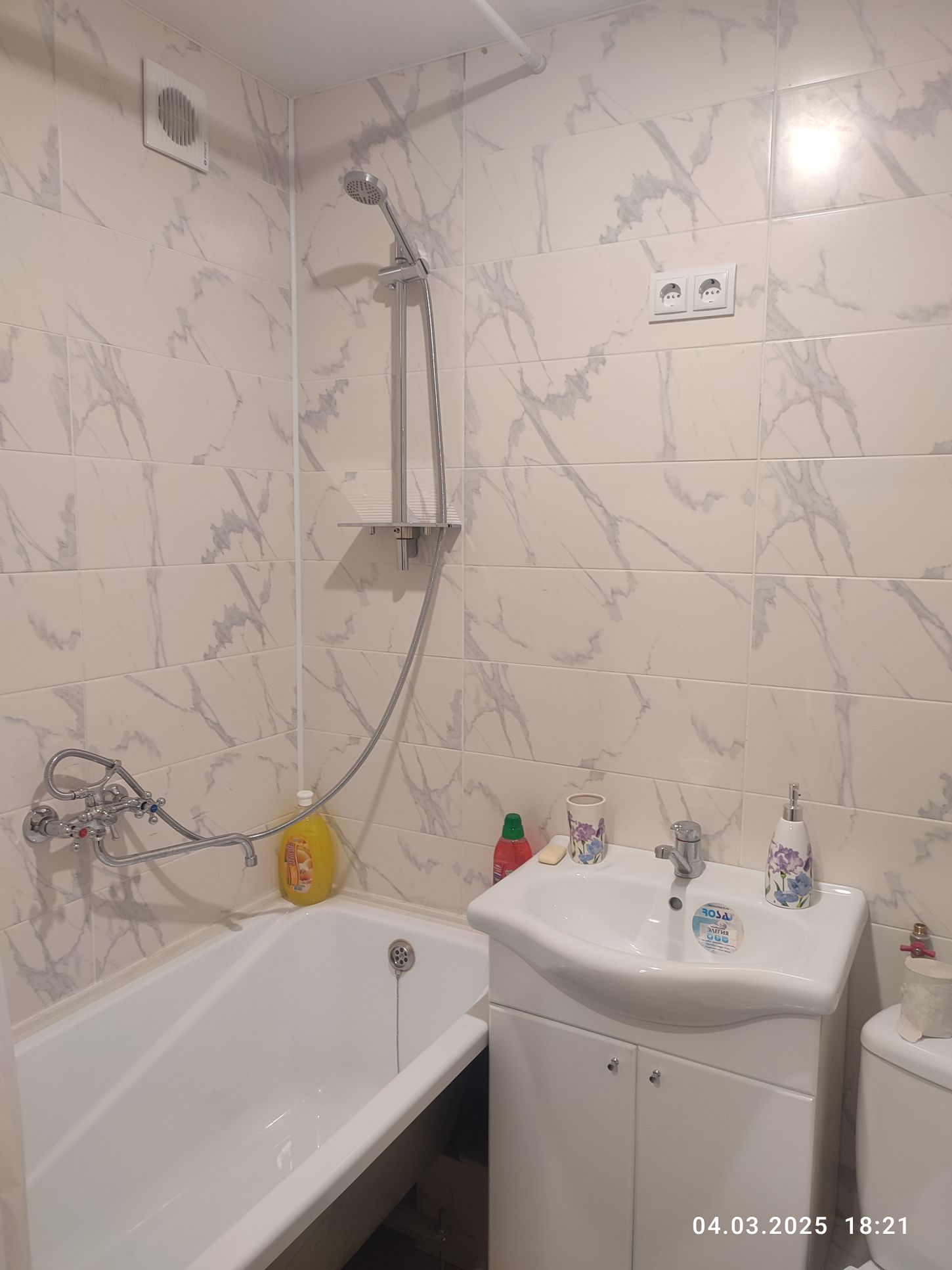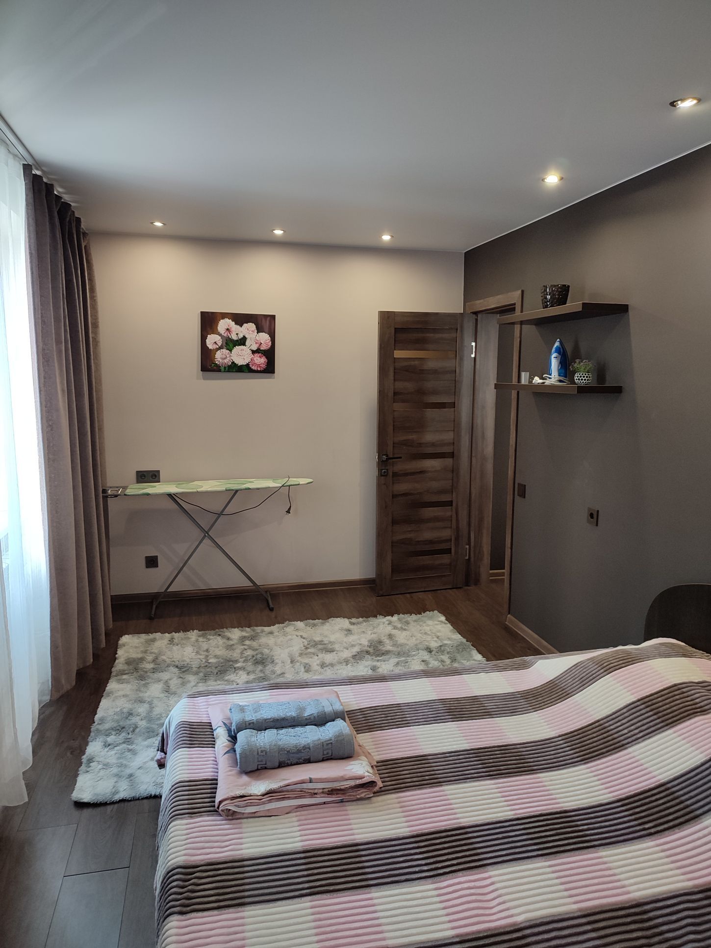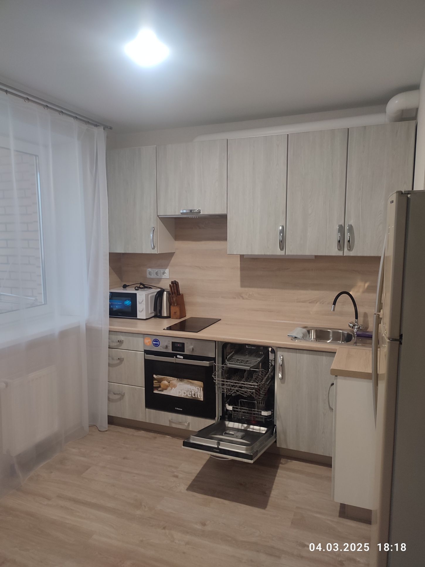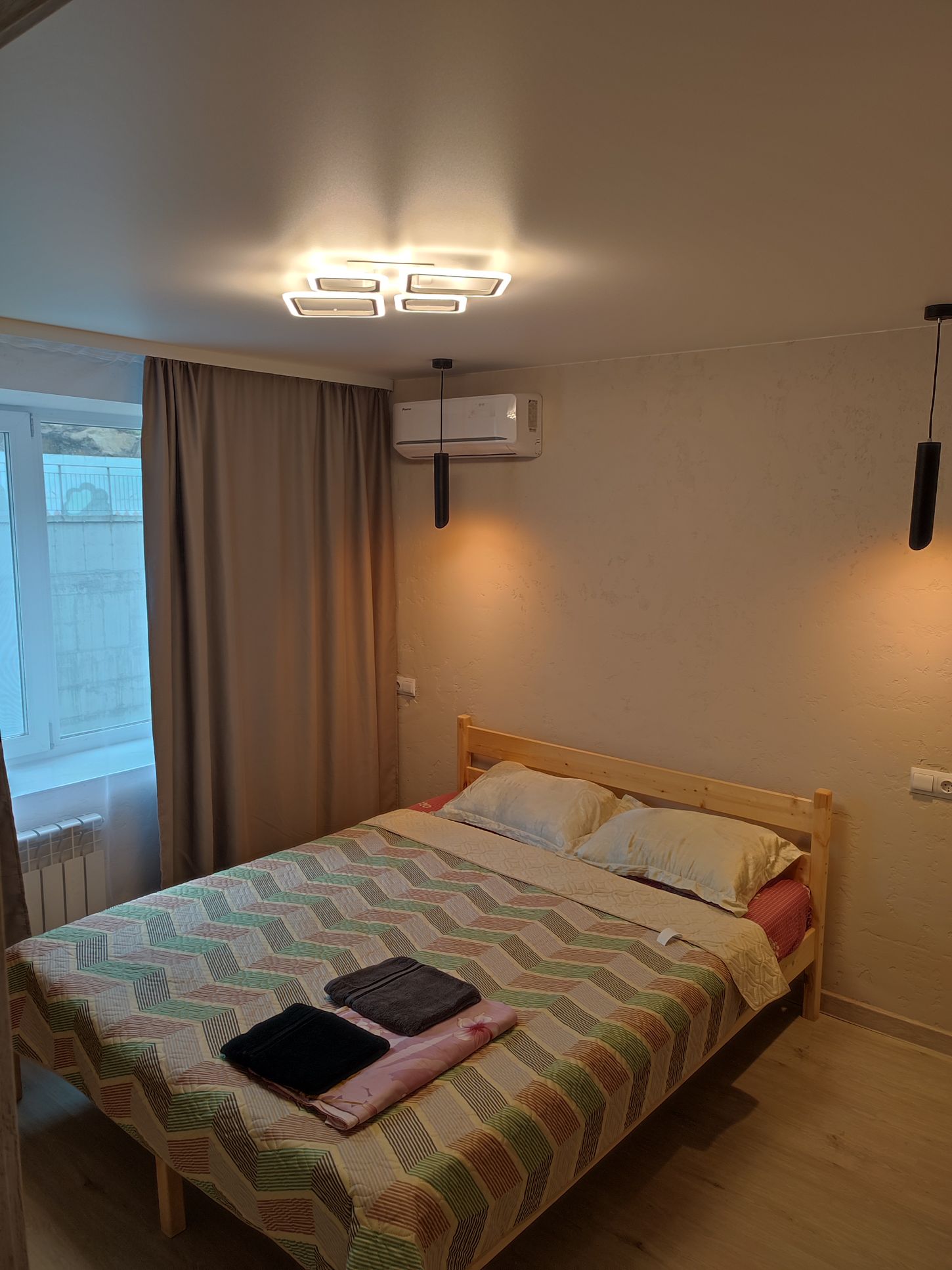 2-комнатная квартира, 46 м2, 4 гостя, 2 кровати, 1 спальня, Кухня-гостиная, Этаж 3 из 9, Лифт, 1 ванная комната, Бесплатная парковка Очень уютная, теплая квартира, Рядом магазин, есть парковка бесплатная, общественный транспорт, рядом остановка Стараемся снимать от двое суток, благодарю за понимание! Внимание! Залог не возвращается если оставлен мусор, не помыта посуда, а так же грязь, хаос после себя. Возврат залога после 18: 00 при соблюдении правила. Спальные места 2 кровати, 4 основных спальных места Основные удобства: Кондиционер, Балкон / Лоджия, Беспроводной интернет Wi-Fi, Телевизор, Электрический чайник, Фен, Микроволновка, Стиральная машина, Блэкаут шторы, Шкаф, Холодильник Кухня-гостиная Электроплита, Духовка, Микроволновка, Посуда и принадлежности, Столовые приборы, Посудомоечная машина, Электрический чайник, Холодильник, Морозильник, Барная стойка, Кухонный гарнитур, Обеденный стол, Турка для приготовления кофе Ванная комната 1 ванная комната с туалетом, Полотенца, Туалетные принадлежности, Фен, Душ, Тапочки, Гигиенический душ Правила проживания Заезд с 14:00—Выезд до 12:00